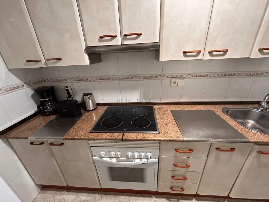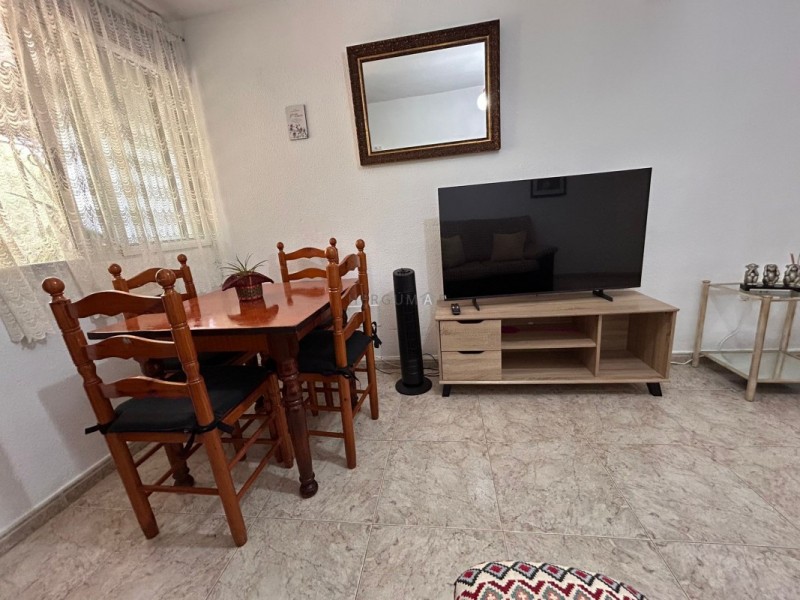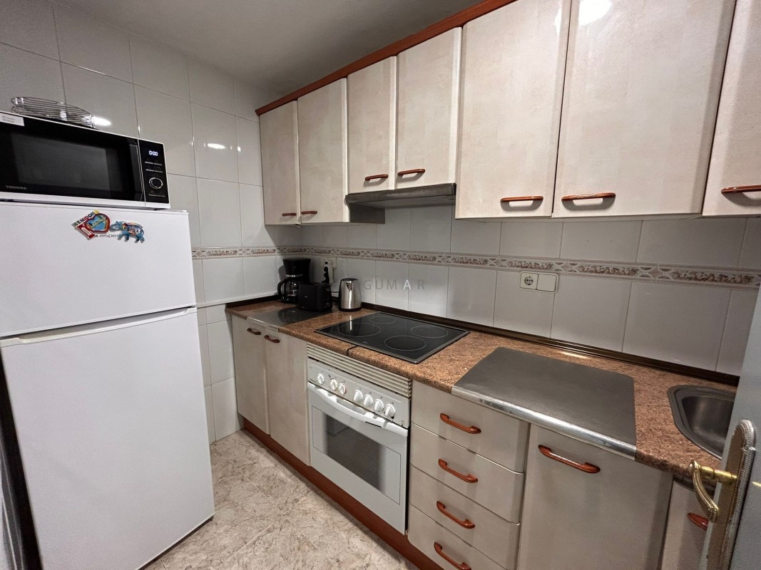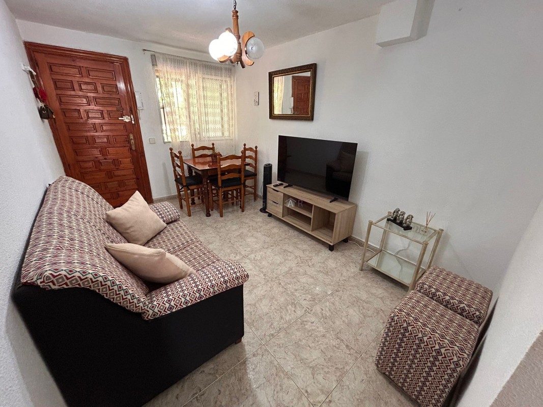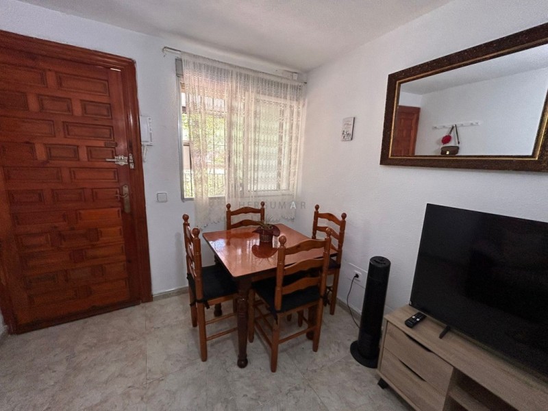 Sencillo apartamento ubicado en la urbanización Condor, muy cerca de la avenida Jaime I y de la playa de Poniente. Situado en la planta baja del edificio, se distribuye en un acogedor salon, cocina independiente, habitación con cama de matrimonio y armario empotrado, terraza acristalada y baño completo con plato de ducha. Este inmueble cuenta con parking comunitario y piscinas con amplias zonas de jardín. Se puede alquilar por semanas quincenas o meses.