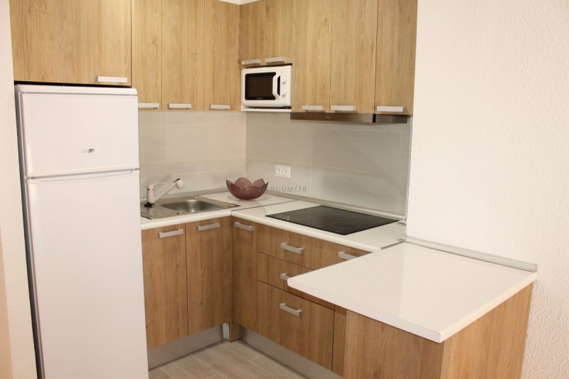 El inmueble dispone de 1 dormitorio con dos camas, el salón con sofá cama y la cocina que está integrada en el salón para darle mas amplitud.